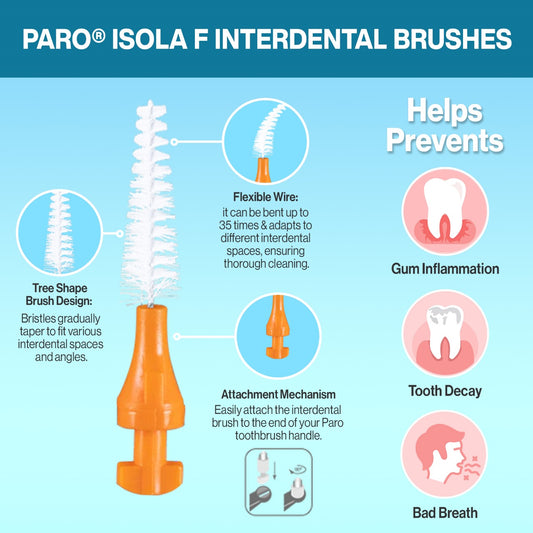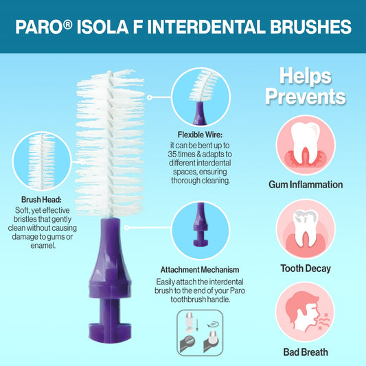 1003 paro® interspace brush F – double-ended handle with 2 brushes each at a diff erent angle